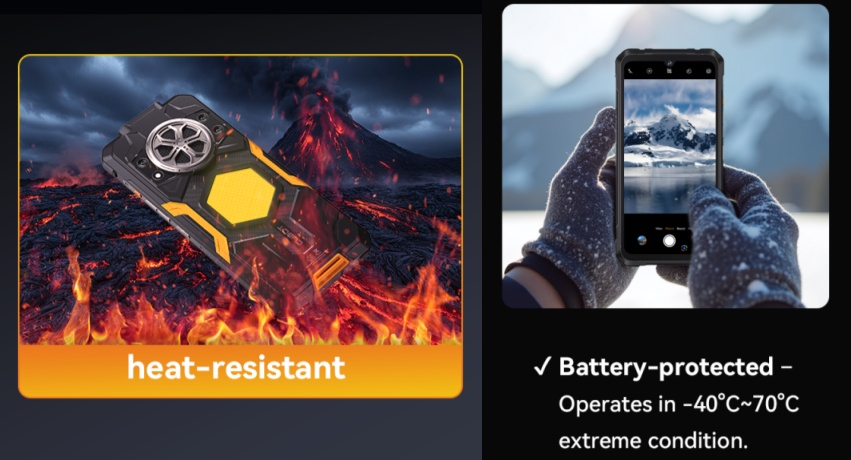 No calor extremo, acima dos 40 graus, celulares tradicionais costumam esquentar, perder desempenho e até desligar sozinhos. O aparelho rugged da Cubot usa uma estrutura reforçada e melhor controle térmico, o que ajuda a manter o funcionamento estável mesmo sob sol forte, uso de GPS, vídeos ou aplicativos pesados.